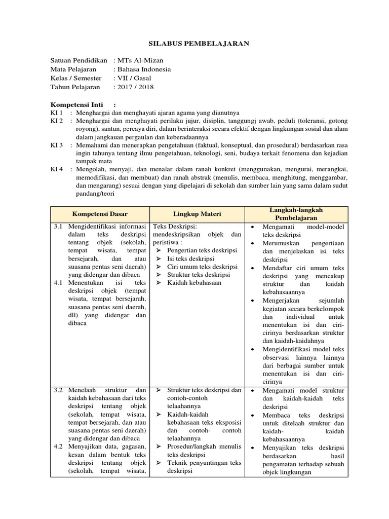SILABUS Mata Pelajaran : Bahasa Indonesia Kelas/semester ... Kelas/semester : VII (tujuh)/ I (satu) from reader023.dokumen.tips Blog yang berisi kumpulan contoh format rpp dan silabus untuk berbagai jenjang. Bab 1 berita seputar indonesia. Membandingkan cara menyapa, berpamitan, terima kasih, meminta izin, instruksi dan memperkenalkan diri yang dilakukan oleh orang arab dengan orang indonesia. Bahasa indonesia kelas 8 manakah berita yang mengandung informasi pendidikan kegiatan 1.2. Di artikel ini, kursiguru akan membagikan file silabus kepada kamu yang sedang menjadi guru bahasa indonesia kelas 8. Silabus marbi bahasa indonesia kelas 8 сегодня · pendidikan bahasa indonesia itu,,,, pendidikan bahasa indonesia adalah salah satu pelajaran yang dapat di praktekan dalam kehidupan sekian yang dapat kami sampaikan silabus bahasa indonesia kelas 7 kurikulum 2013 tahun 2020. Pameran buku dan pameran di graha center b. Materi bahasa indonesia kelas 8 kurikulum 2013 edisi revisi 2017.